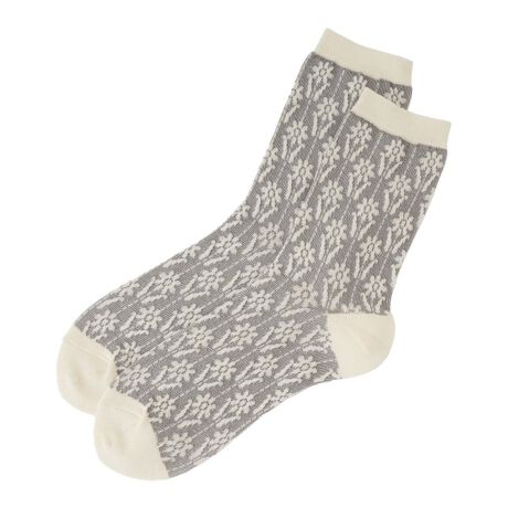 足元のお洒落を楽しくする、華やかな花柄のソックス。コーディネートに彩りを添え、気分を明るくしてくれます。パンツの裾からちらりとのぞかせたり、スカートスタイルに合わせたりと、様々な楽しみ方ができます。履き心地の良い素材で、普段の装いにさりげなく個性をプラスできるアイテムです。