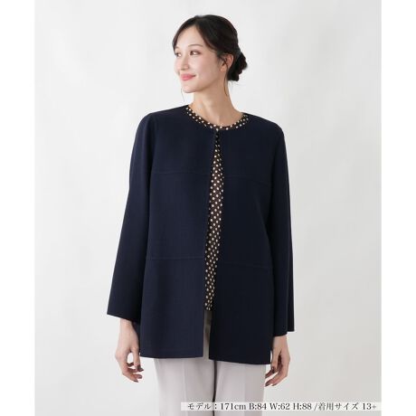 イタリアの「MANIGLIA」から、職人技が光る一重仕立てのノーカラージャケットが届きました。カーディガン感覚で軽やかに羽織れる着心地の良さが魅力です。上品な丸首のデザインは、インナーやアクセサリーを選ばず、様々なコーディネートにマッチします。時代を超えて愛用できる、洗練された大人のための一着です。