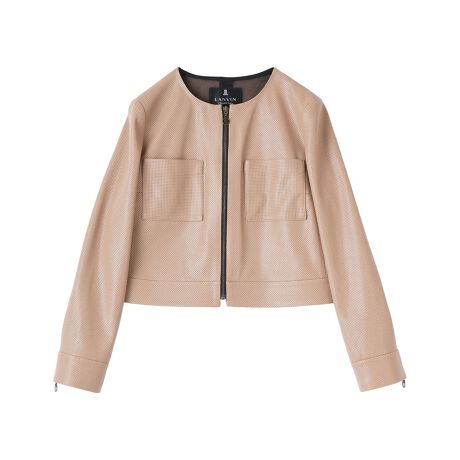 繊細なパンチング加工が施された薄手のフェイクレザーが、軽やかな表情とモダンな佇まいを演出するブルゾンです。ハードさを払拭し、空気感と抜け感を備えた洗練された素材感が魅力。
