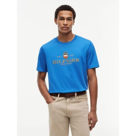 大胆にデザインされたアイコニックなグラフィックがリュクスな雰囲気を演出する、ショートスリーブのクルーネックTシャツです。ブレザーやパーカーを重ね着しても、胸元で存在感を主張してくれます。袖口には、さりげなくフラッグロゴのワンポイントをあしらいました。
