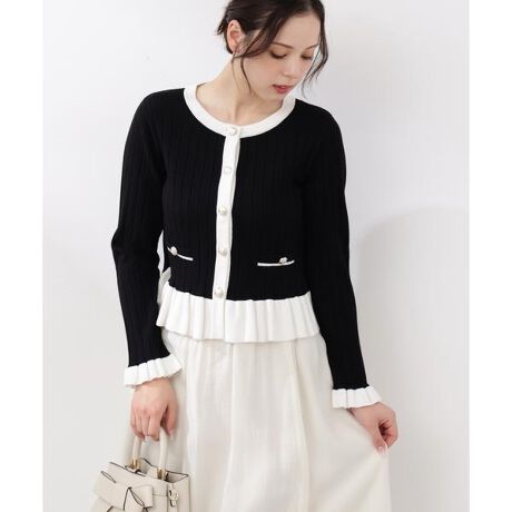 短めのペプラムシルエットが新鮮なニット。ゴールドカラーの飾りボタンがカジュアルすぎず、配色もアクセントになり、クラシカルな雰囲気に見せてくれます。デニムスタイルはもちろん、キレイめパンツとも相性良く着用いただけます。