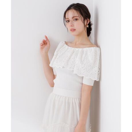 スカラップレースオフショルニット 26SS