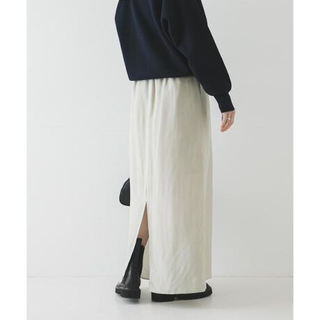 上品な微光沢とすっきりとしたシルエットが、大人の抜け感を演出するスカート。