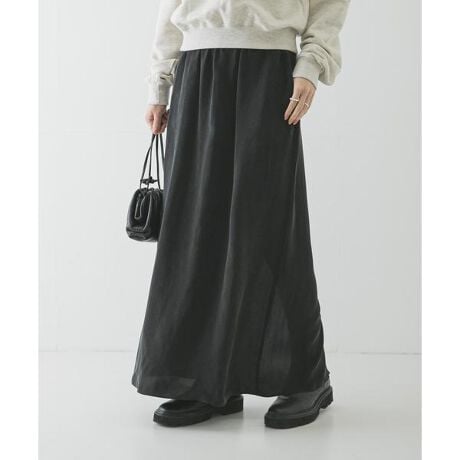 上品な微光沢とすっきりとしたシルエットが、大人の抜け感を演出するスカート。