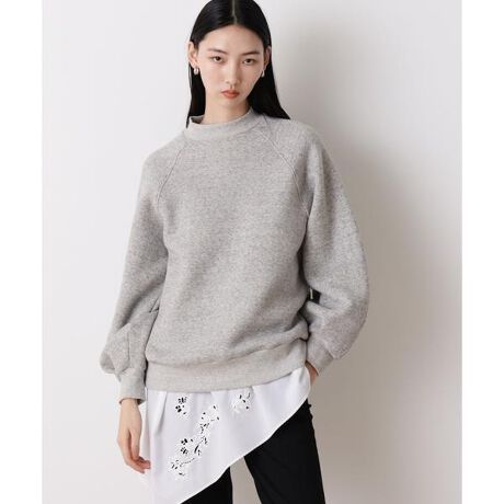 そで部分にボリュームを持たせたフォルムが魅力のスウェットアイテム。詰まったスタンド襟がスポーティーさとモード感を演出。デニムと合わせてもカジュアルすぎず、大人の女性が楽しめる裏毛素材のプルオーバーです。