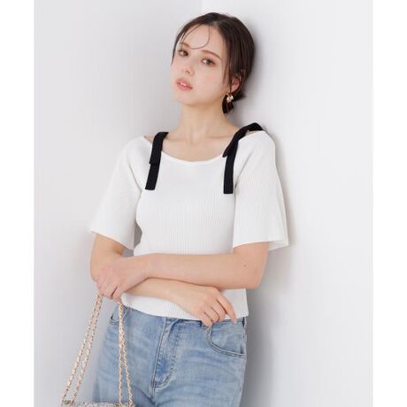 <ウォッシャブル/UV>肩リボンオフショルニット 26SS