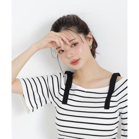肩リボンが目を引くオフショルニット。体のラインを拾いにくいリブ編みにし、デコルテをキレイに見せてくれる広めのネックが大人っぽい雰囲気を演出。無地はもちろん、これからの季節にぴったりなボーダー柄もおすすめです。