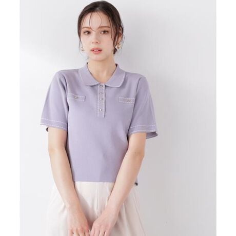 配色ステッチラインが目を引く衿付きニット。袖や飾りポケットだけでなく、トレンドのスキッパー衿にもステッチラインを入れており、シンプルながらアクセントをプラス。きちんと感がありつつも、ゆとりのあるシルエットで、カジュアルスタイルにも合わせやすい一枚です。