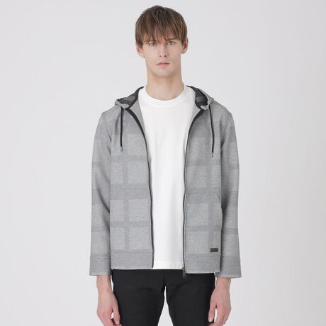 全面にシャドーのチェック柄をあしらったパーカー。メランジ調のカラーリングと程良いハリ感によりオトナなテイストのパーカーに仕上げています。フード裏にあしらったチェックや光沢感あるファスナーなど細かな部分にもこだわった一着です。