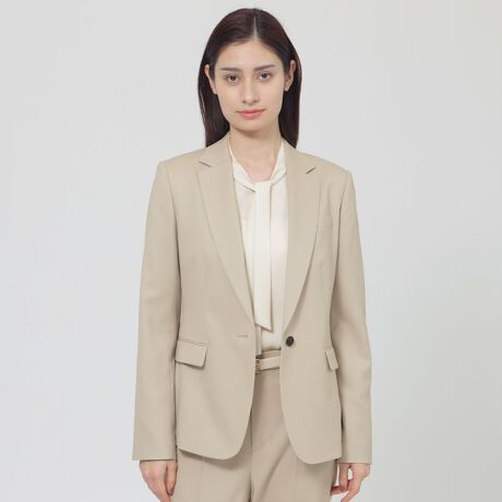 同素材のスカート(K1S13712) 、パンツ(K1R44712)のどちらと合わせても凛としたスーツスタイリングをつくりだすシルエットに仕上げました。