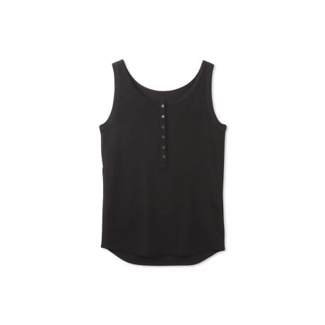 ハリ感、弾力性のあるファブリックを使用したヘンリーネックデザインのノースリーブプルオーバーです。