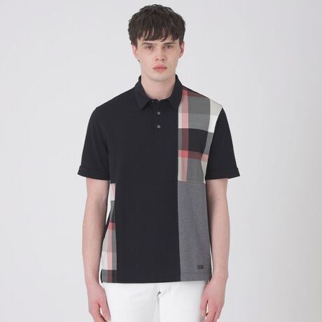 【チェック柄を取り入れたパッチワークデザインのポロシャツ】