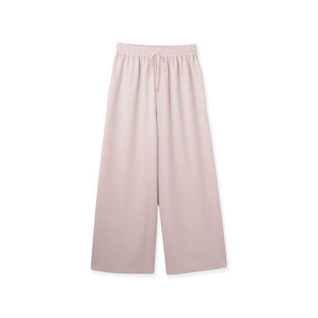 ウエストはゴム仕様のプルオンタイプでリラクシーな着用感ながら、華奢で微光沢感のあるドローコードデザインでおとな印象に。