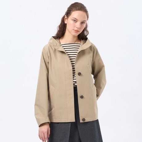 ミニマルなディティールできちんと見えが叶うコンパクトなショートブルゾン「クルニー」。はっ水加工を施した生地を使用し、天候の変化にも対応できる万能アウターです。ミニマルなデザインでカジュアルダウンし過ぎず、キレイ目なフードブルゾンに仕上げています。様々なボトムスにも合わせやすいレングスも嬉しいポイントです。裾のドロストリングコードでシルエットの変化が楽しめるアイテムです。