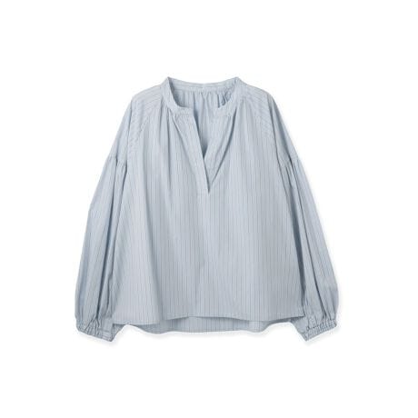 ギャザーを寄せたドロップショルダーデザインで袖口をゴム仕様にすることで、袖をたくし上げた際に、よりふんわりとしたボリューム感の感じられる着こなしに。