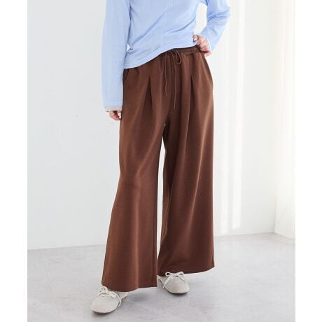 *リラックス感漂う上品カジュアルパンツ。弾力のあるダンボールニット素材が心地よく、包み込まれるような柔らかなはき心地が魅力です。