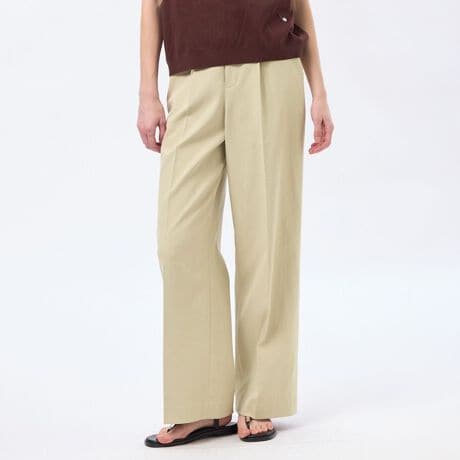 浅めのフロントタックで、ウエスト周りはすっきりとさせながらもヒップにゆとりが生まれ、美しいストレートシルエットを実現しています。