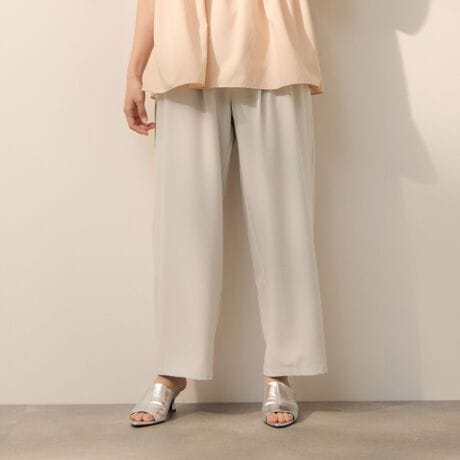 タックインでもアウトでもスタイリングが決まるウエストデザインながら、バックウエスト部分はゴム仕様で履き心地の良さも兼ね備えます。