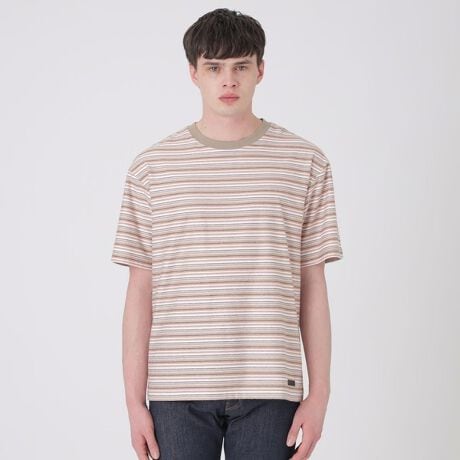 着回しやすいカラーリングのボーダーTシャツ。オリジナルのピッチで仕上げたマルチボーダーになっています。ジャケットのインナー等、キレイ目コーディネートにも映えるTシャツです。