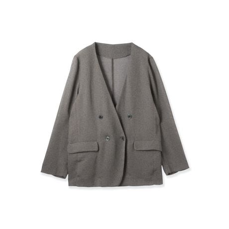 カーディガン感覚でご着用いただけるノーカラージャケットです。