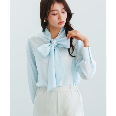 【 華やかに彩る 】シャイニーシアー・BIGリボンボウタイブラウス