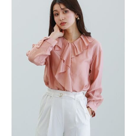 ブラウス フリルブラウス ラッフルフリル シルキーローン オフィスコーデ きれいめ 上品 フェミニン 長袖ブラウス 通勤服