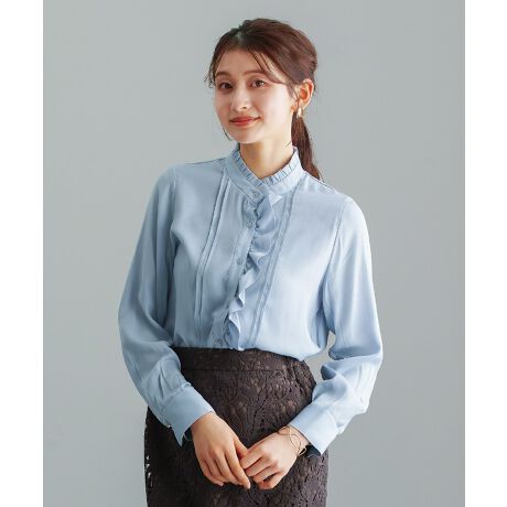 ブラウス フリルブラウス スタンドネック オフィスコーデ きれいめ 上品 通勤服 レディース トップス 長袖