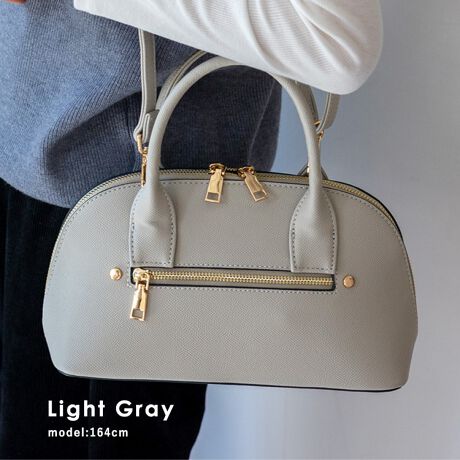 ころんとしたフォルムと上質感のある角シボ合皮が、持つだけで洗練された印象に。
