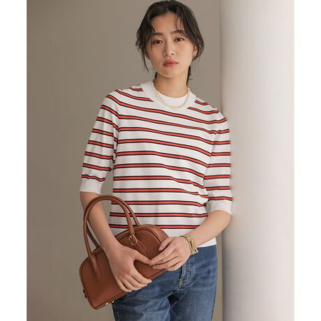 ■デザイン・襟元が上品な六分袖ニットは、同素材のカーデとのアンサンブルはもちろん、T シャツ感覚で単品としても使える優秀アイテムでコーデの幅がグッと広がります。・オンオフ問わず活躍間違いなしです。・フィットしすぎないすっきりとしたシルエットと絶妙な生地の厚さで、もたつきがなく着心地も抜群です。・シンプルなアイテムだからこそ細部までこだわりました。