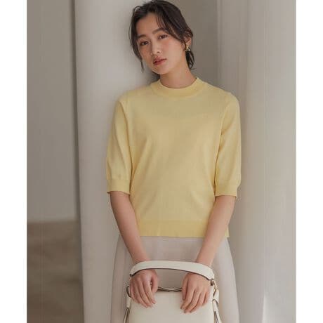 ■素材・伸縮性のある糸に極細のストレッチ糸を加えることで、もっちりとした着心地と体のラインをひろいすぎない適度な肉感、きゅっとつまった編地の表情がポイントの素材です。・強撚糸のもつ光沢感がさらに上品な印象にしています。・コーディネートの鮮度を上げてくれるカラーの発色の良さも魅力です。