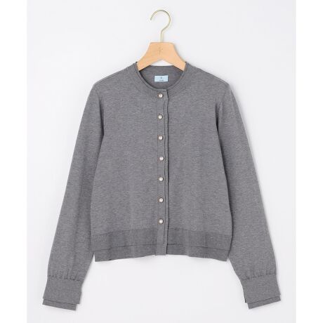 ■デザイン・カーディガンを2枚重ねたようなレイヤード調のディテールが目を惹くニット。・小さな襟とコンパクトなクロップド丈がシックでモダンなカーディガンは首や肩が美しく見える絶妙なバランスと、大きめのパール釦がシンプルなデザインのチャームポイントになっています。・一番上の釦は、『K』をモチーフにした飾り文字をメタルで表現したパーツを使ったパール釦が、シンプルの中に存在感を放ちます。・しっかりとした生地なのでダルっとせず好バランスがつくれ、コーディネート次第で様々な表情をみせてくれます。・釦を全部留めてプルオーバーのように着るのもおススメです。