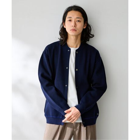スウェットのリラックス感と、カーディガンの上品さをバランスよくミックスした一枚です。程よくゆったりとしたシルエットで、肩を落としたリラックスした雰囲気がありながら、フロントのスナップボタンが全体をすっきりと引き締めてくれます。襟のないクルーネック仕様はインナーを選ばず、Tシャツでもシャツでも自然に馴染むのが魅力。裾や袖まわりにはさりげない切り替えラインが入り、シンプルながらも小技の効いたデザインに仕上がっています。
