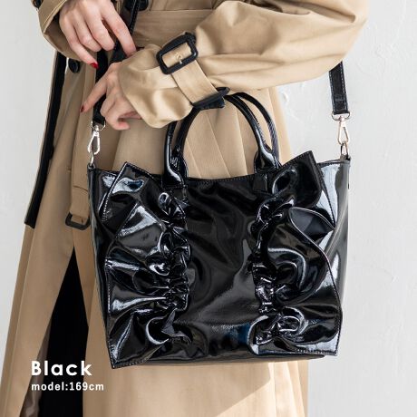 エナメル2wayフリルトートバッグ 【aroco/アロコ】