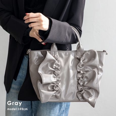 エナメル2wayフリルトートバッグ 【aroco/アロコ】