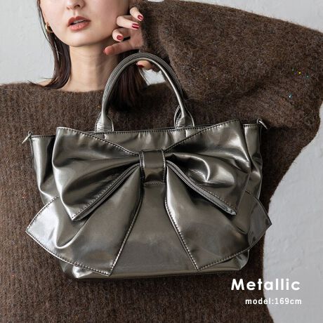 エナメル2wayリボントートバッグ 【aroco/アロコ】