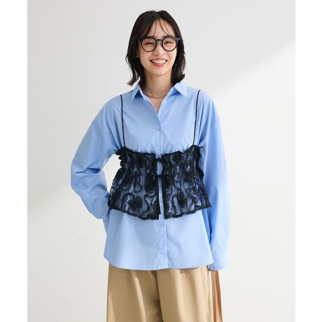 一枚で決まる大人の上品セットシンプルなシャツにレースビスチェを組み合わせた、トレンド感あふれるセットアイテムです。程よくゆとりのあるシルエットが抜け感を演出し、甘さのあるレースがコーディネートに立体感をプラスします。セットで着用すれば旬のレイヤードスタイルが簡単に完成し、別々でも使えるため着回しの幅が広がります。カジュアルなボトムスと合わせればデイリーに、きれいめアイテムと合わせればお出かけシーンにも対応できます。着るだけでコーデが整うので、忙しい朝にも頼れる存在です。上品カジュアルを楽しみたい方にぴったりです。透け感[ややあり]