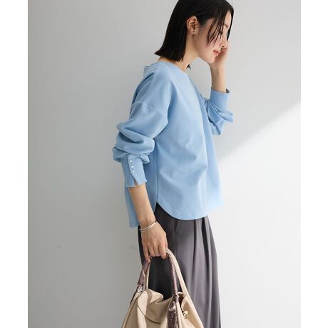 さりげないパールで上品な毎日を袖口にあしらったパールが、さりげなく華やぎを添えてくれる一枚です。シンプルなデザインながら、手元に視線を集めるワンポイントがコーディネートを上品に格上げします。なめらかなカットソー素材で着心地がよく、ほどよくゆとりのあるシルエットが体のラインをやさしくカバーします。裾は前後差のあるラウンドデザインで、パンツにもスカートにも合わせやすいのが魅力です。デニムと合わせたカジュアルスタイルはもちろん、きれいめボトムと合わせれば通勤やお出かけにも活躍します。季節の変わり目にも使いやすく、着回し力に優れた定番トップスとしてワードローブにおすすめです。透け感[ややあり]