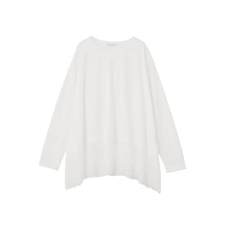 裾レースが揺れるイレヘムで華やぐ一枚裾にあしらったイレギュラーヘムのレースが印象的な、異素材ドッキングデザインのプルオーバーです。シンプルな身頃に繊細なレースを組み合わせることで、一枚で着映えする上品なスタイルが完成します。動くたびに揺れるイレヘムラインが軽やかさを演出し、さりげなく女性らしさを引き立てます。ヒップラインを自然にカバーする丈感で、パンツにもスカートにも合わせやすいのが魅力です。デイリーコーデはもちろん、きれいめなお出かけスタイルにも活躍します。重ね着いらずで決まるため、忙しい朝にも頼れるアイテムです。透け感[ややあり]