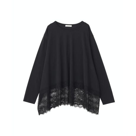 裾レースが揺れるイレヘムで華やぐ一枚裾にあしらったイレギュラーヘムのレースが印象的な、異素材ドッキングデザインのプルオーバーです。シンプルな身頃に繊細なレースを組み合わせることで、一枚で着映えする上品なスタイルが完成します。動くたびに揺れるイレヘムラインが軽やかさを演出し、さりげなく女性らしさを引き立てます。ヒップラインを自然にカバーする丈感で、パンツにもスカートにも合わせやすいのが魅力です。デイリーコーデはもちろん、きれいめなお出かけスタイルにも活躍します。重ね着いらずで決まるため、忙しい朝にも頼れるアイテムです。透け感[ややあり]