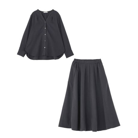 一着で決まる、上品セットアップスキッパーデザインのブラウスと、軽やかに広がるプリーツスカートがセットになったアイテムです。顔まわりをすっきり見せるネックラインが抜け感を演出し、きちんと感とやわらかさを両立します。スカートはウエストゴム仕様で、長時間の着用でも快適です。上下セットで着るだけでコーディネートが完成するので、忙しい朝にも頼れる存在です。それぞれ単品使いもでき、手持ちのジャケットやニットと合わせれば着回しの幅が広がります。オフィスからお出かけ、セレモニーまで幅広いシーンに対応する、上品カジュアルなセットアップです。※スカートのみ裏地あり透け感[ややあり]