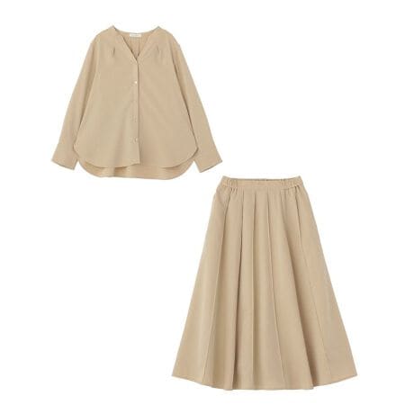 一着で決まる、上品セットアップスキッパーデザインのブラウスと、軽やかに広がるプリーツスカートがセットになったアイテムです。顔まわりをすっきり見せるネックラインが抜け感を演出し、きちんと感とやわらかさを両立します。スカートはウエストゴム仕様で、長時間の着用でも快適です。上下セットで着るだけでコーディネートが完成するので、忙しい朝にも頼れる存在です。それぞれ単品使いもでき、手持ちのジャケットやニットと合わせれば着回しの幅が広がります。オフィスからお出かけ、セレモニーまで幅広いシーンに対応する、上品カジュアルなセットアップです。※スカートのみ裏地あり透け感[ややあり]