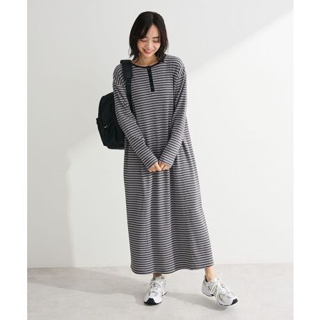 一枚で決まる上品カジュアルワンピース程よく開いたヘンリーネックが顔まわりをすっきりと見せてくれるデザインです。シンプルながらもフロントのボタンがアクセントになり、着るだけでこなれた印象に仕上がります。ゆとりのあるシルエットで締め付け感が少なく、長時間の着用でも快適にお過ごしいただけます。ストンと落ちるラインが縦のシルエットを強調し、自然にスタイルアップ効果も期待できます。一枚で様になるためコーディネートに悩まず、カーディガンやジャケットとのレイヤードも楽しめます。カジュアルシーンにぴったりで、毎日のワードローブに取り入れやすい万能な一着です。透け感[ややあり]