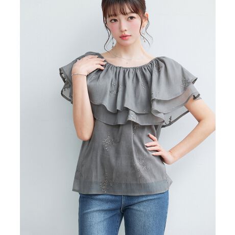 刺入りオーガンジーフリルブラウス