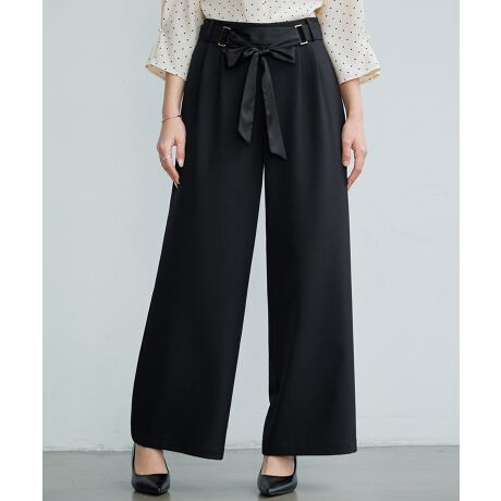 大人エレガントなリボン取り外しできるワイドパンツ。