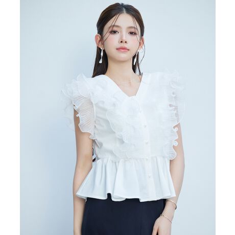 ラッフルフリルペプラムブラウス