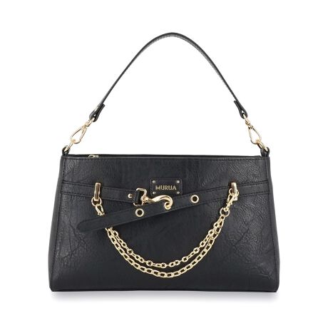 かっちりとした印象のスクエアディテールのショルダーバッグ。前面には取り外し可能なチェーンチャームが付属。