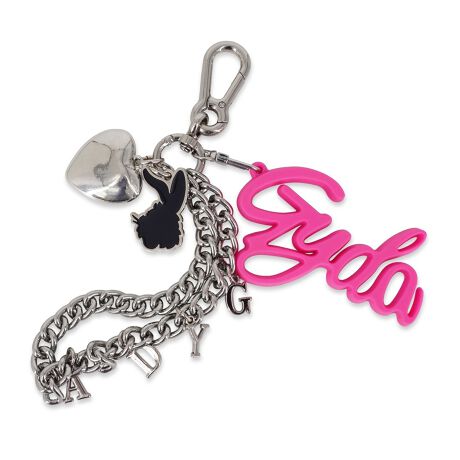 GYDAの切り文字チャームにはシリコン素材を使用。その他はメタルを使用する事でGYDAの切り文字チャームが際立つ仕上がりに。ピンクとブラックの2色展開。