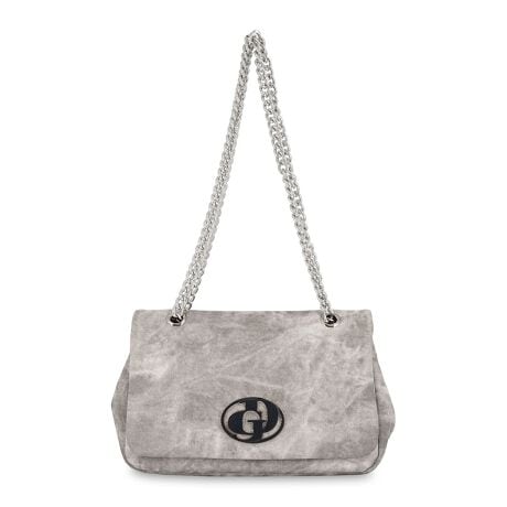 GYDAの中で人気の高い“GGロゴ”を変形させた新しいロゴを大きなメタルにした新シリーズ。ウォッシュ加工を施したデニムのような特徴的なフェイクレザーを使用。