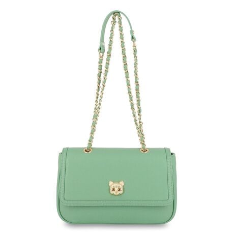 ショルダー部分にはチェーンを使用し、アクセサリーを身に着けるような感覚でお持ちいただく事が可能です。