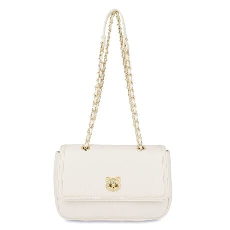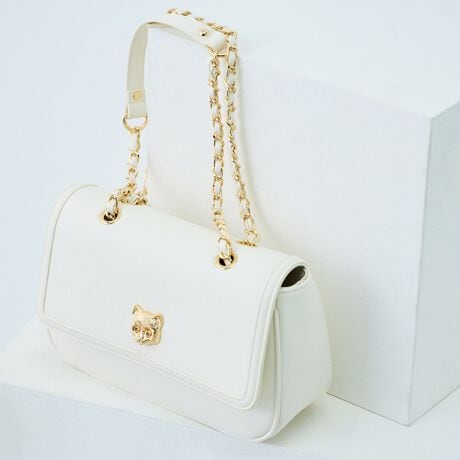 ショルダー部分にはチェーンを使用し、アクセサリーを身に着けるような感覚でお持ちいただく事が可能です。